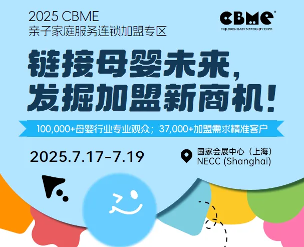 在全家化服务的趋势下海量母婴人都在寻找优质的加盟项目,CBME作为孕婴童全渠道商贸对接平台,近年来收到诸多类似的需求,所以我们在2025 CBME展会上特设——亲子家庭服务连锁加盟专区,并将其设为2025 CBME亮点展区之一。