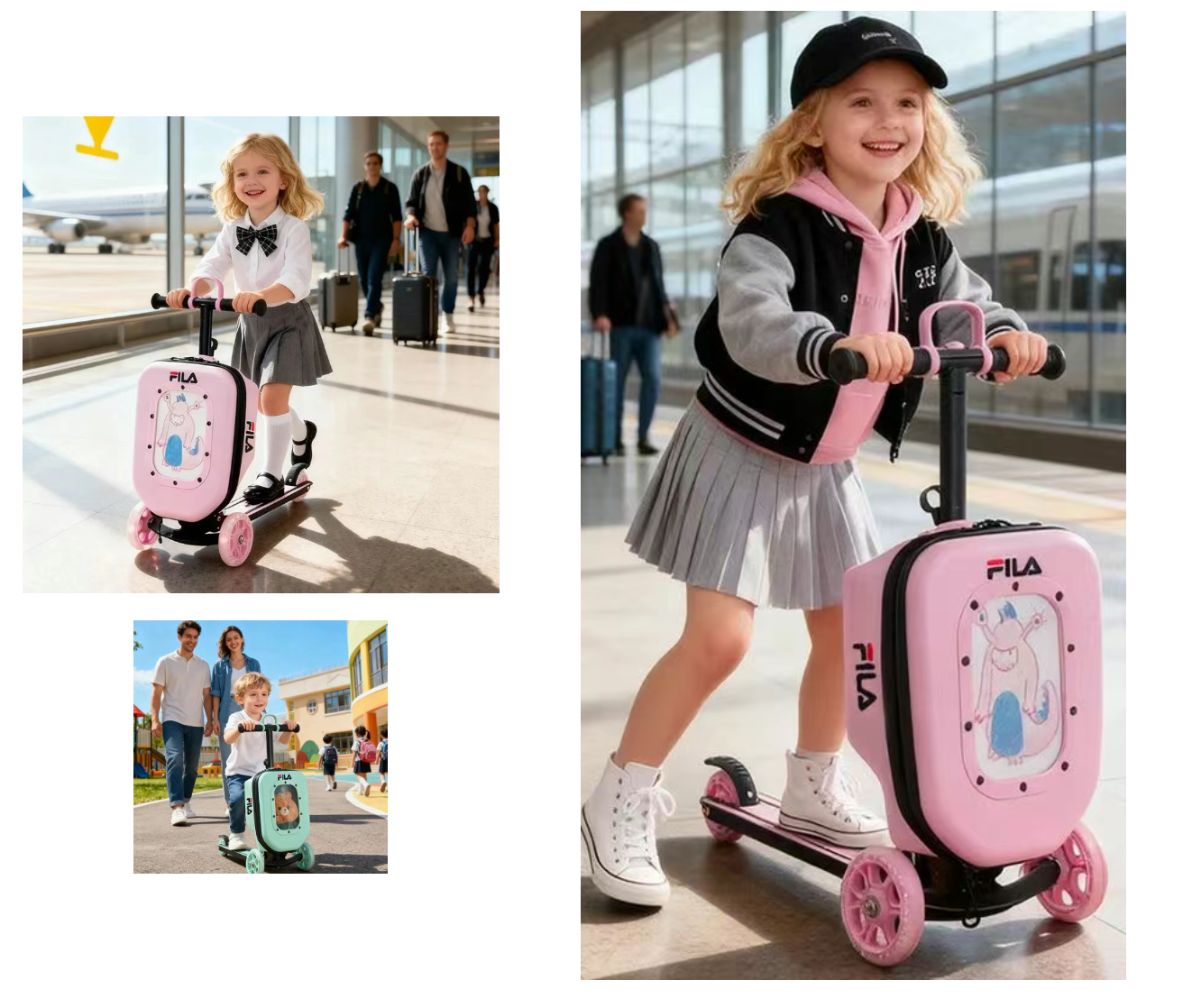 自面市以来,产品半年内全球销量突破30000台,获得海外渠道高度认可与家庭口碑推荐。其核心优势在于以”可移动的儿童储物空间+滑行工具”的设计思路,打破传统滑板车的单一功能局限,带来”出行即运动、行李即玩具”的创新体验。