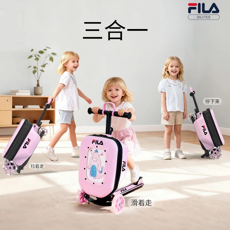 作为品牌在儿童品类的创新突破,FILA儿童滑行箱融合了滑行、推拉、储物三大功能,直击家长带娃旅行时”一手行李、一手牵娃”的现实窘境。这款被定义为”出行担当、快乐运动”的创新产品,不仅让孩子能自主推行个人物品并享受滑行乐趣,更在过程中锻炼其平衡力与独立性,让亲子旅途变得轻松有序。