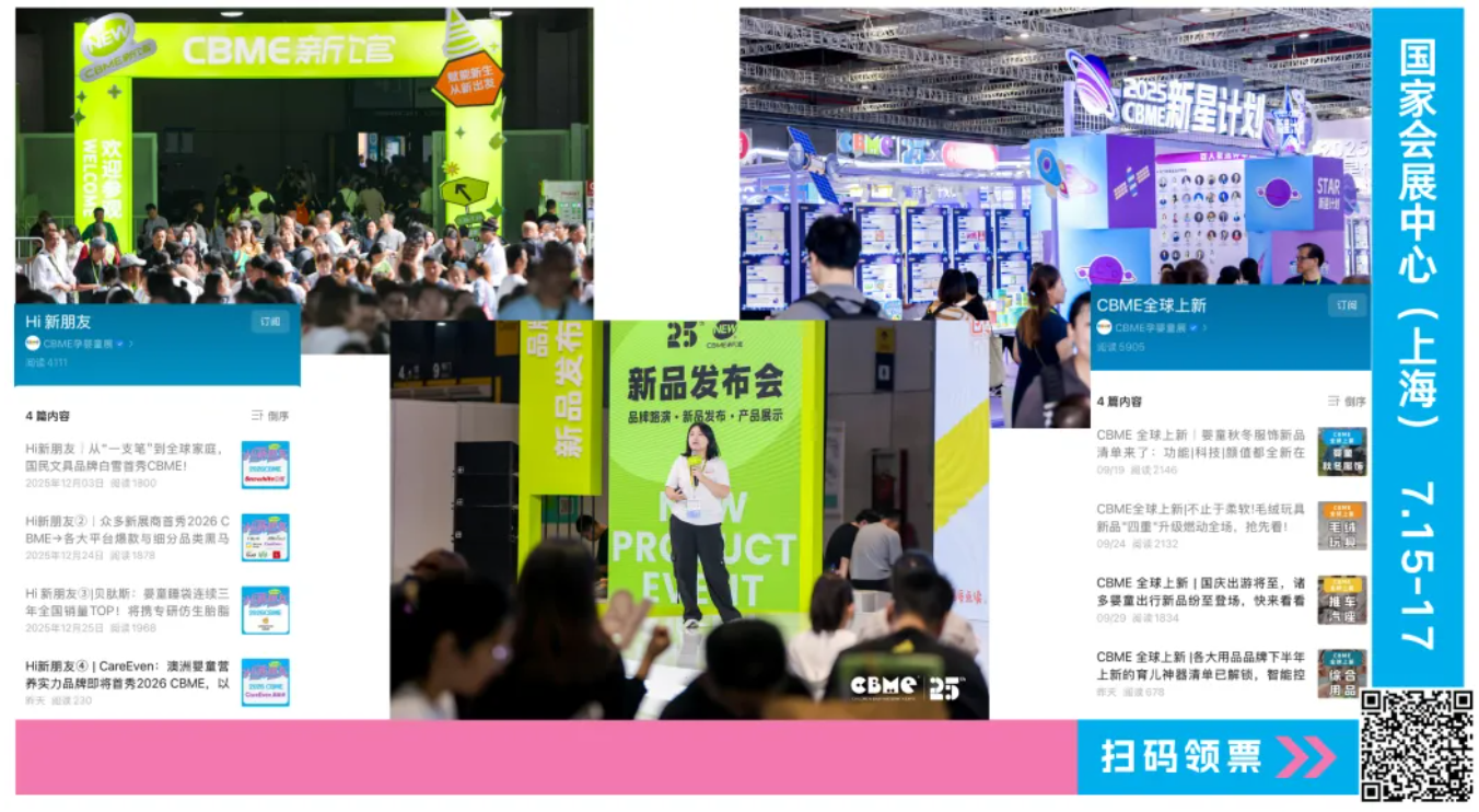 CBME「全球上新计划」已启动,通过“全球首发”和“Hi新朋友”内容剧透,新馆、新星计划&新品发布会等活动,帮你一站式锁定年度新产品、挖到潜力新品牌,抢先抓住增长机会。