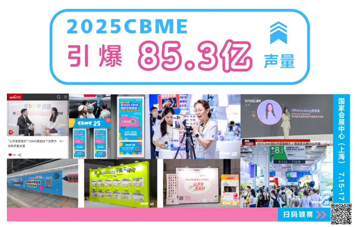 CBME作为母婴圈的顶流盛会,堪称年度“必打卡”盛事!每年吸引超十万专业观众共聚于此,现场热度爆棚!CBME与抖音、小红书、新浪、知乎等线上核心平台深度联动,共创热点话题,加码流量激励UGC内容创作,获数十亿声量,全方位引爆行业热点!