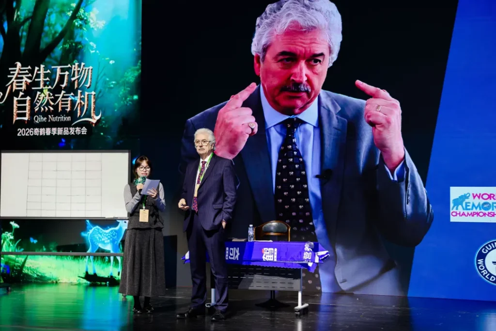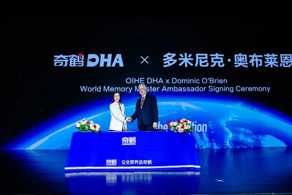 发布会上,另一个备受瞩目的环节是:奇鹤品牌创始人唐水华与全球首位世界记忆大师、八届世界记忆总冠军Dominic O‘Brien(多米尼克・奥布莱恩)正式签约,聘请其担任奇鹤DHA代言人。