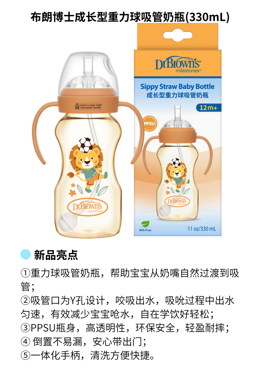 ①搭配直通吸嘴,适用年龄跨度大,3个月-2岁+,一杯喝到大;