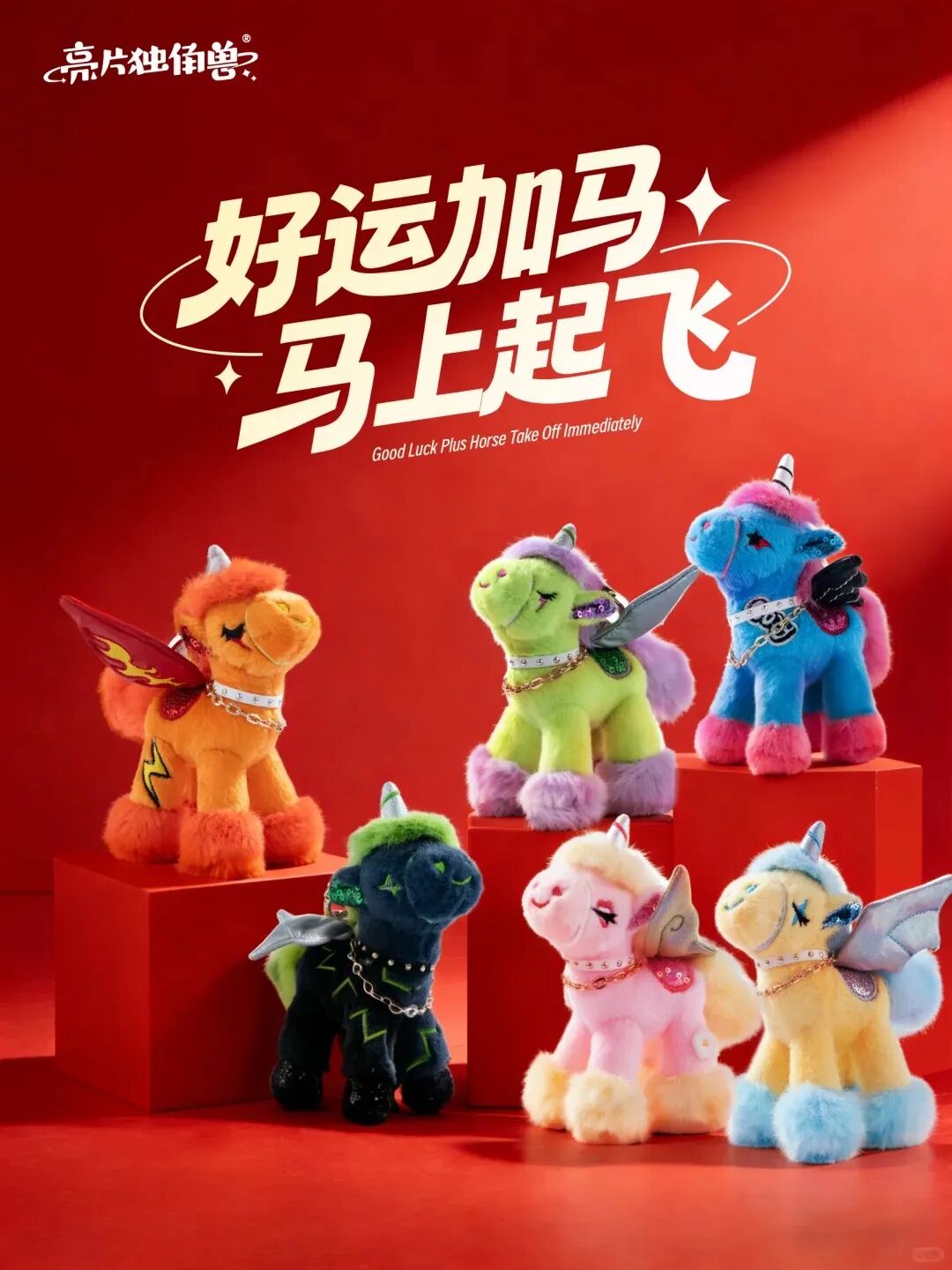 这个春节,亮片独角兽品牌推出了马年春节限定“好运加马”系列玩偶,同时携手朱炳仁·铜潮玩品牌,共同推出了“扶摇·纳吉”联名限定系列玩偶。